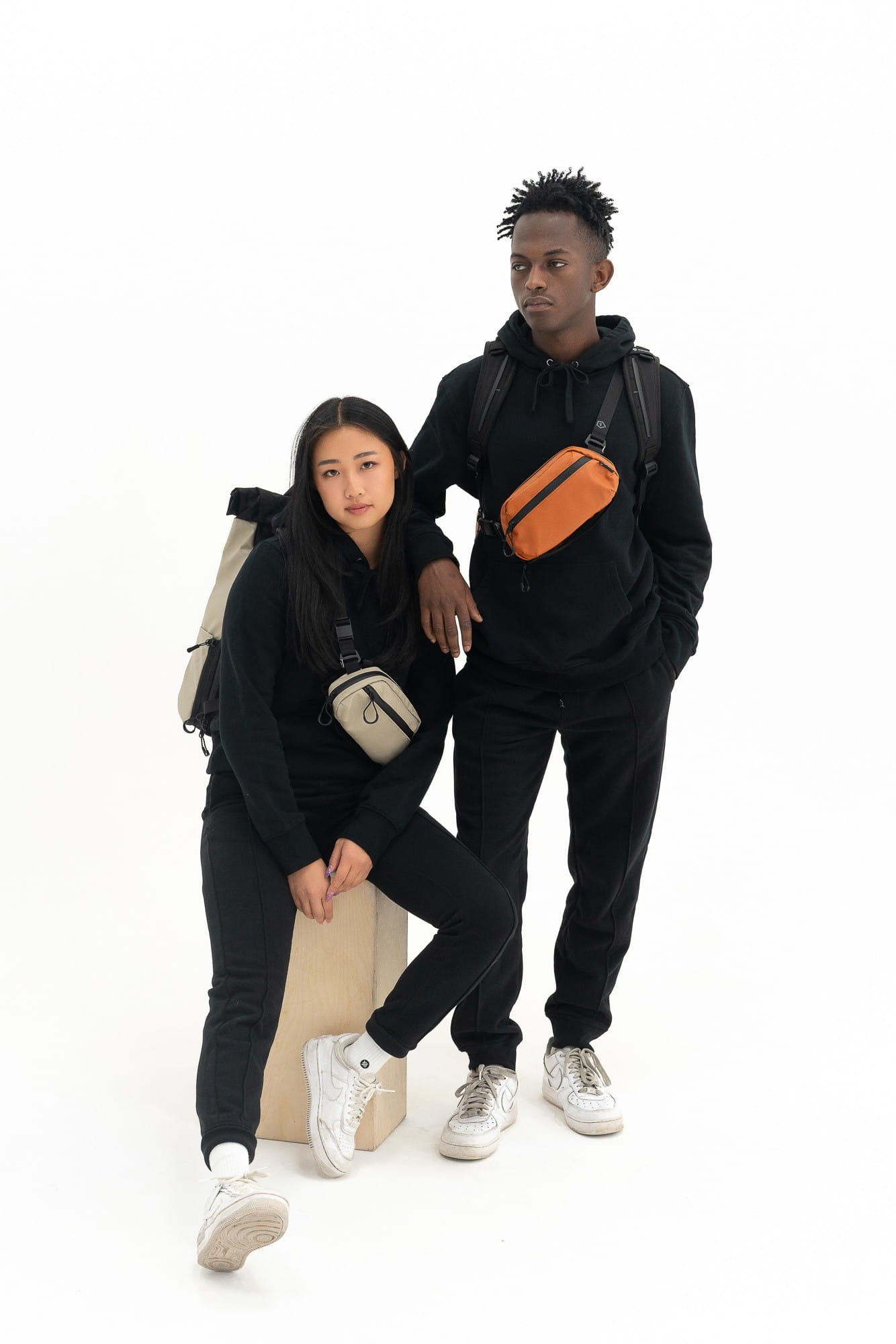 - torba biodrowa i przylegający do ciała "sling bag" w jednym
