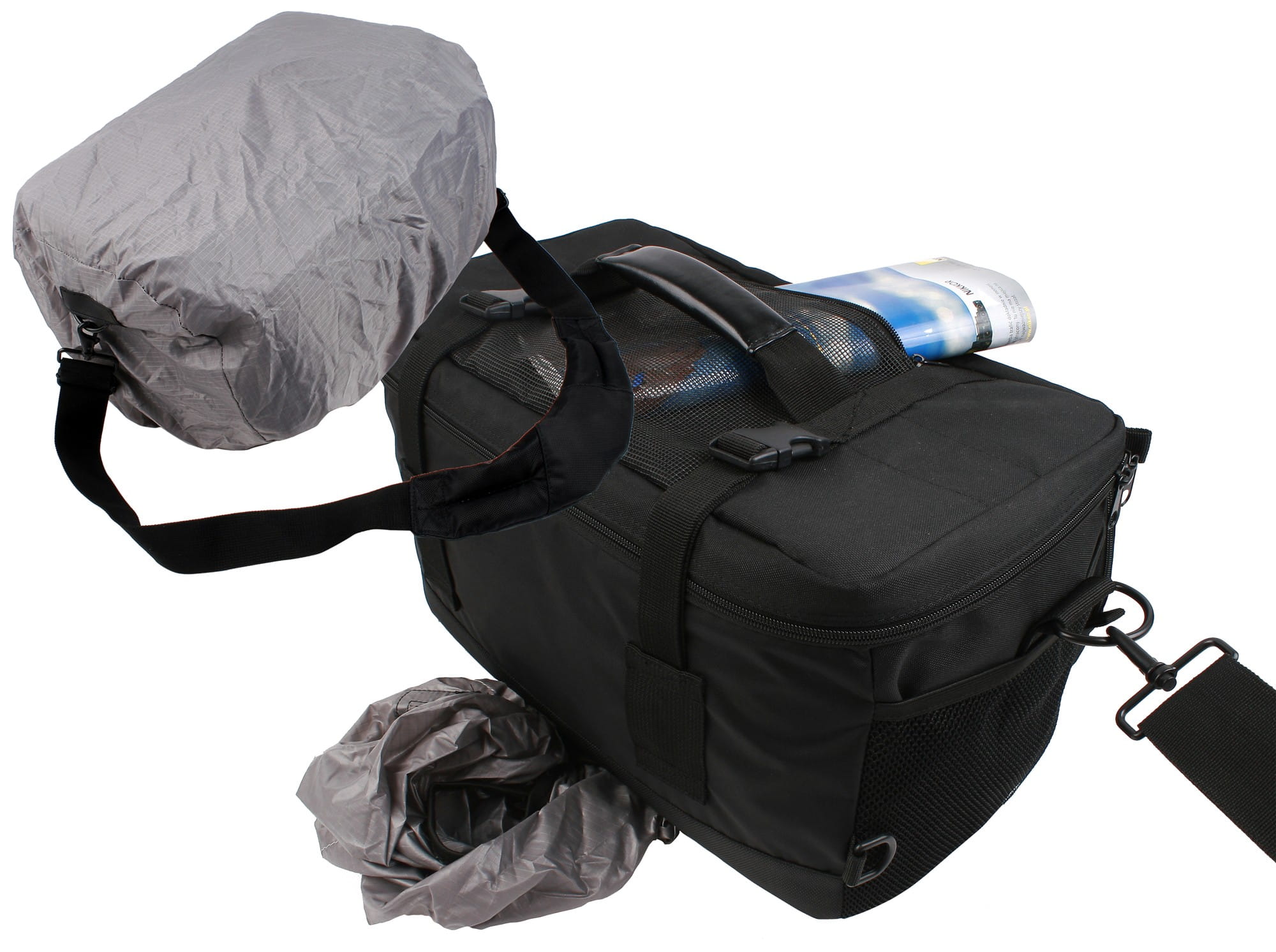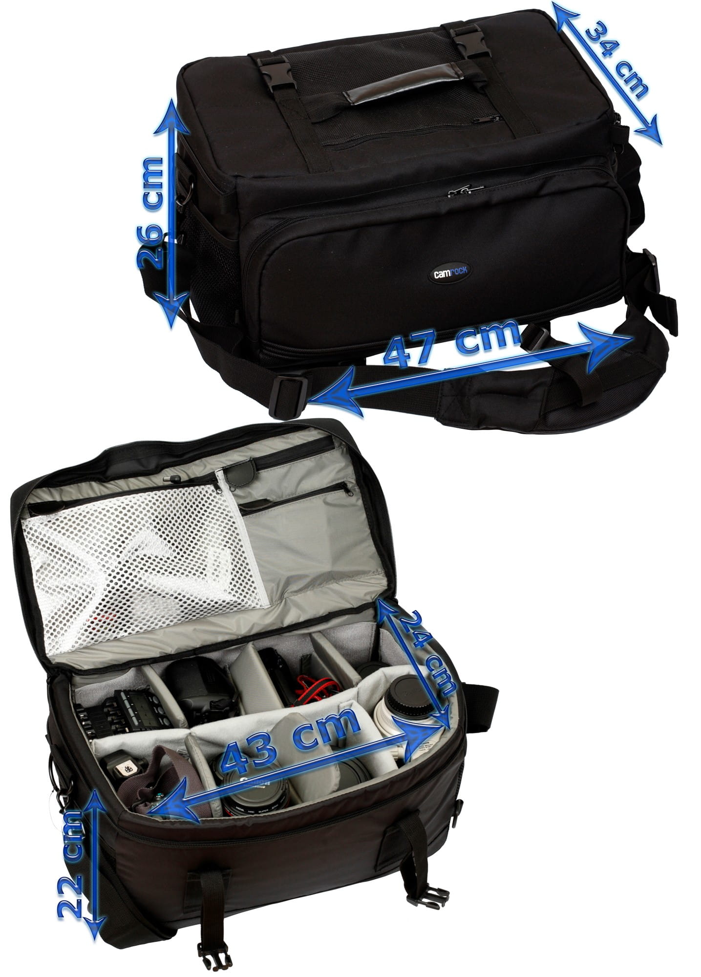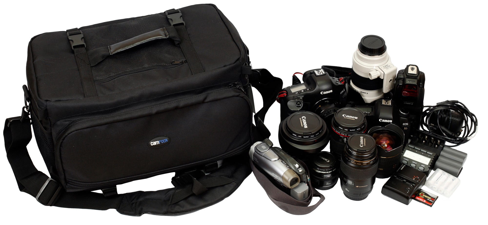 - pomieści 2 korpusy, 8 obiektywów, lampę błyskową i szereg innych akcesoriów,