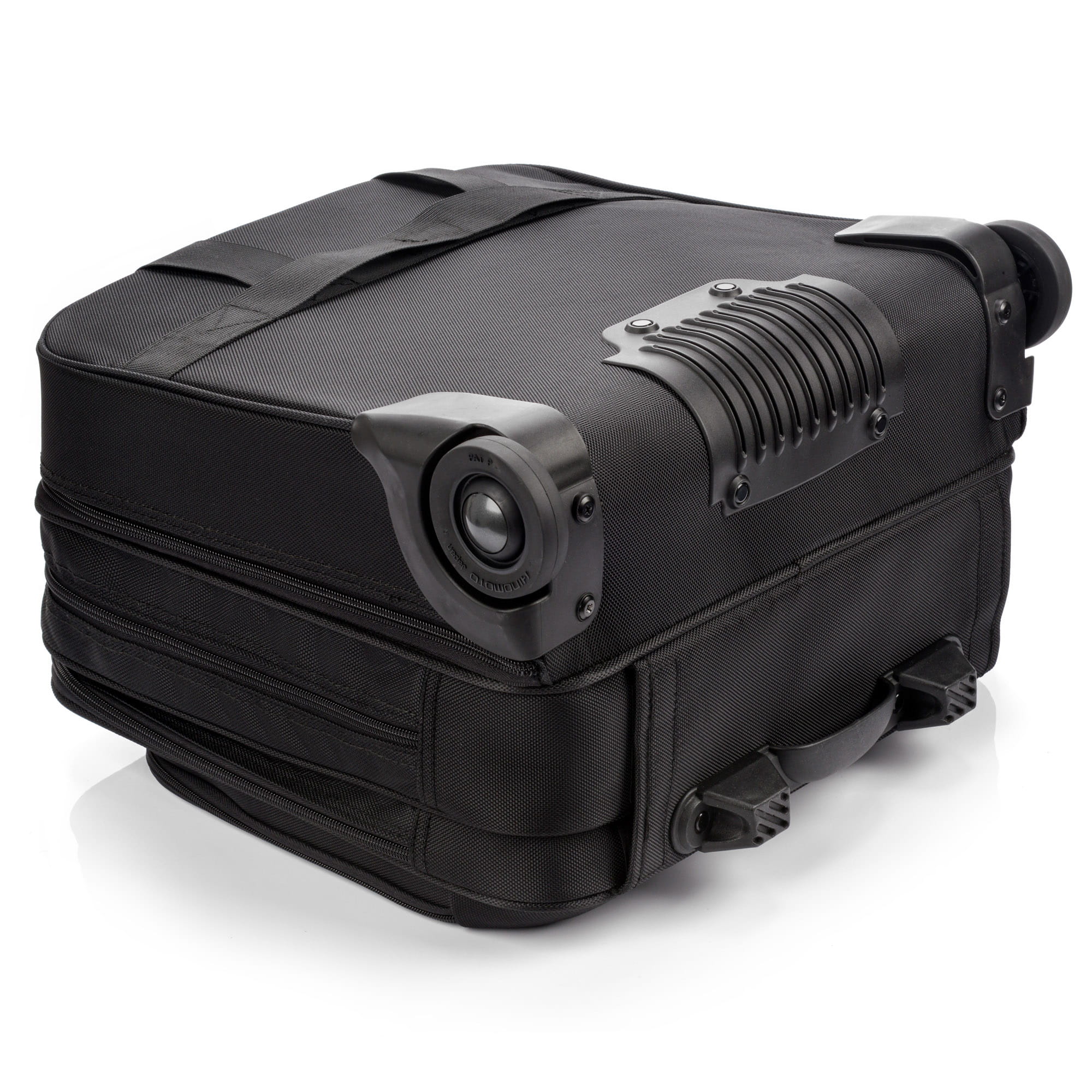Wygodny transport – specjalnie zaprojektowana teleskopowa rączka oraz uchwyt do zaczepienia na walizce umożliwiają swobodny transport torby. Dzięki nim możesz bez stresu przemieścić się w tłumie.
