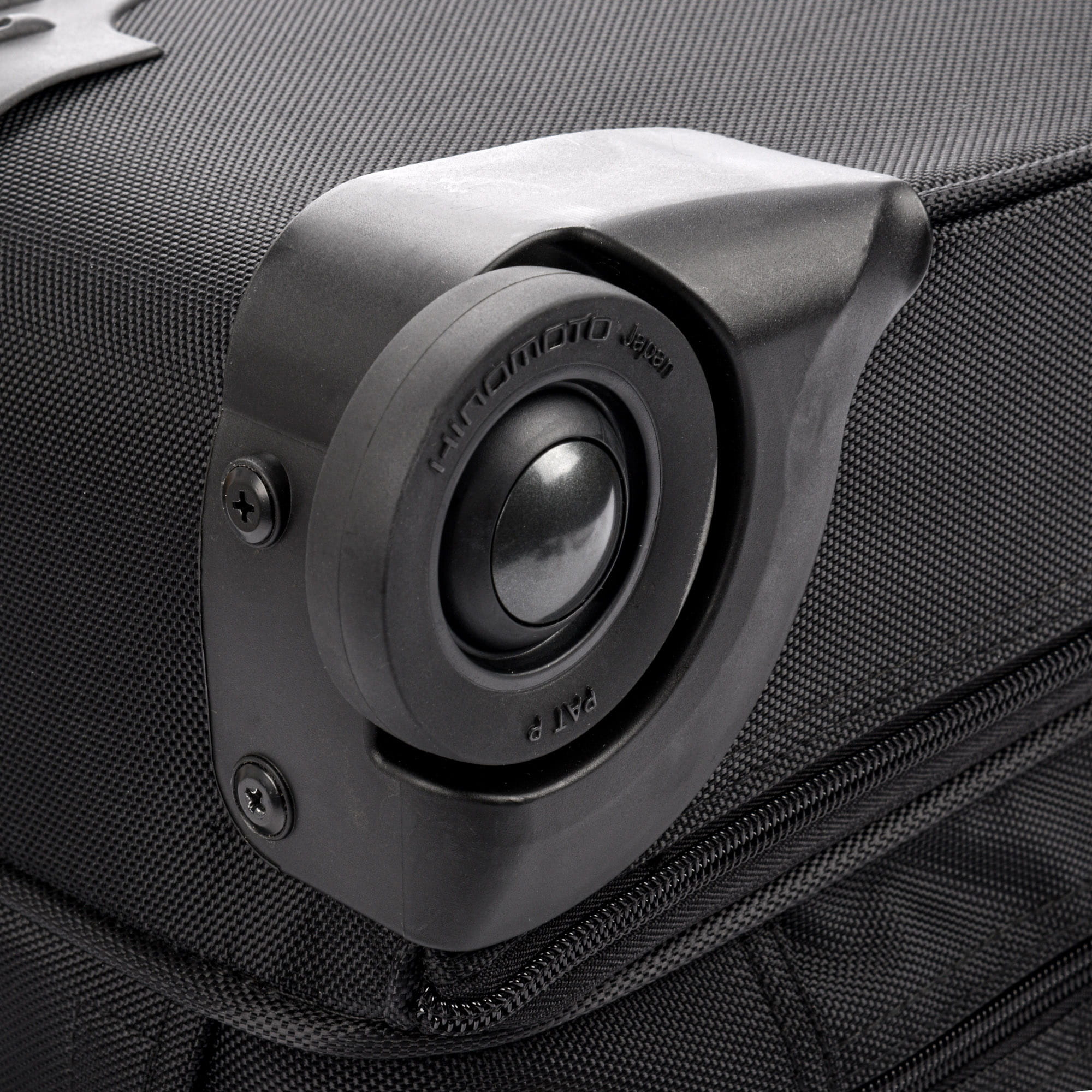 Ciche kółka japońskiej marki Hinomoto zapewniają płynną jazdę i swobodne przemieszczanie. Torba wyposażona jest także w podwójną rączkę oraz dwustronne zamki błyskawiczne, gwarantujące bezpieczeństwo i wygodę przenoszenia.