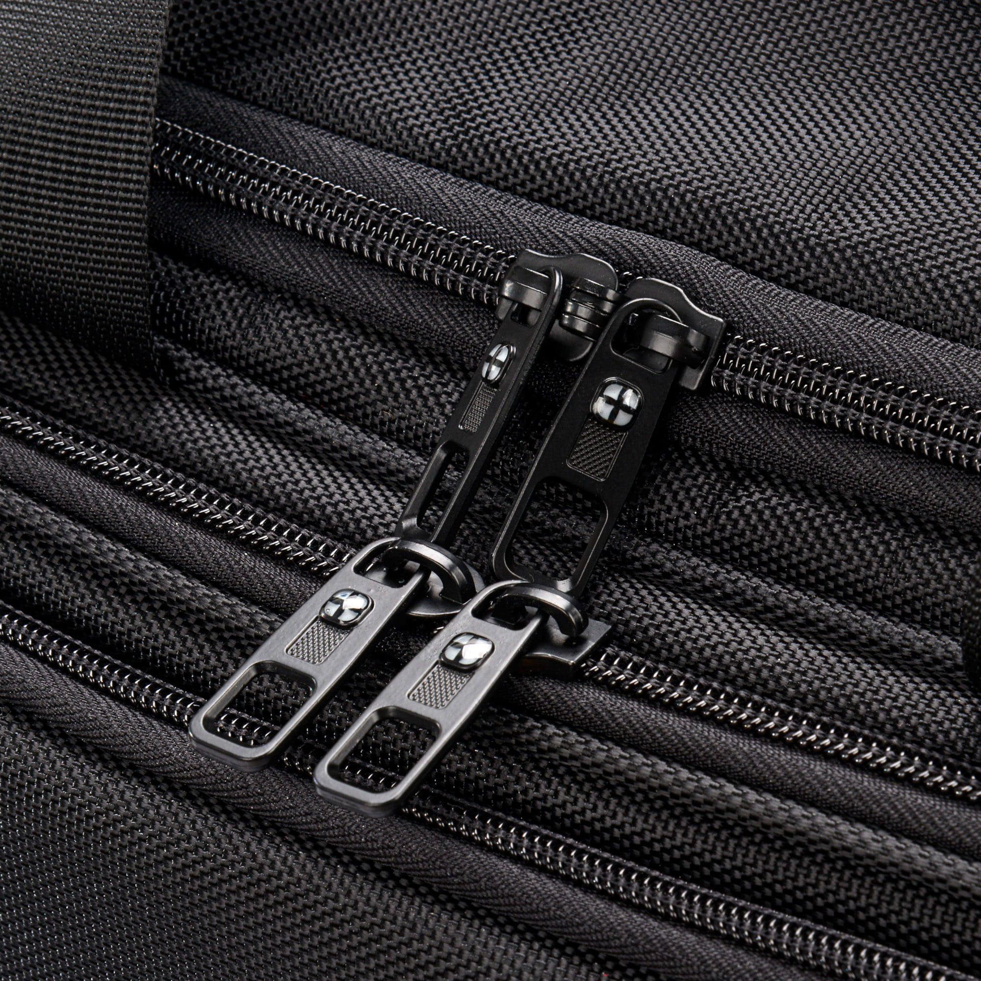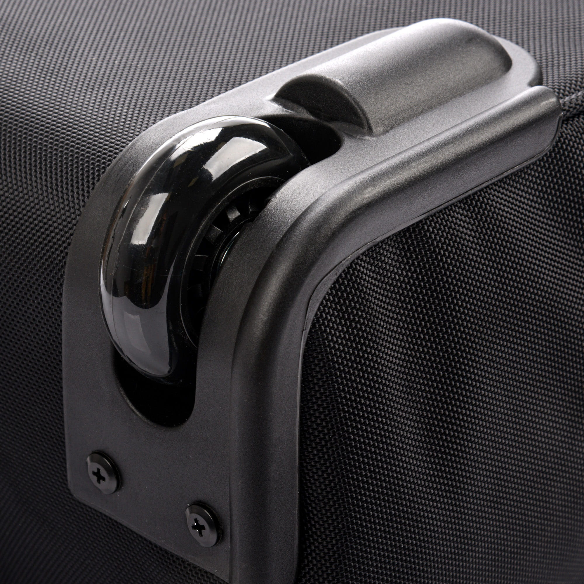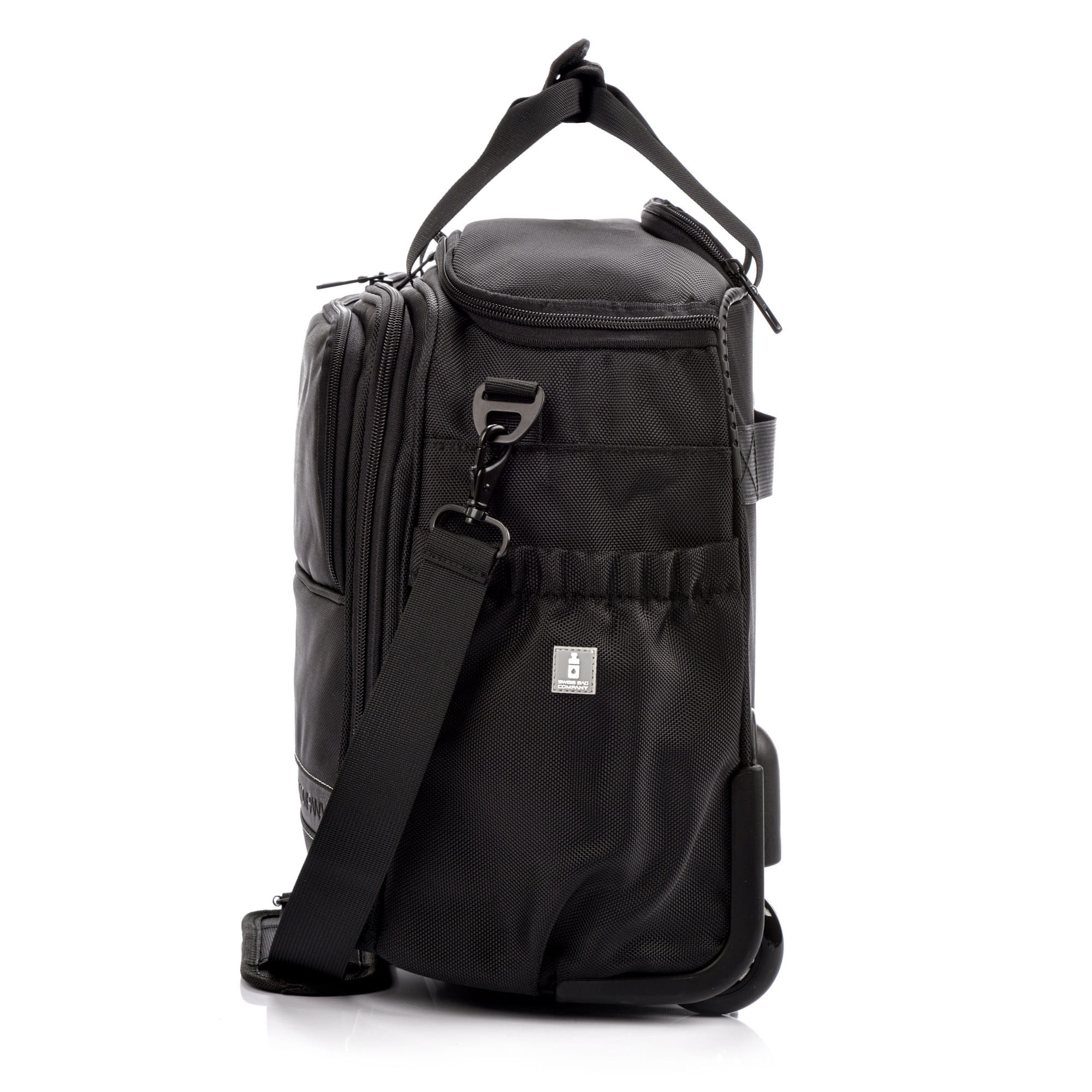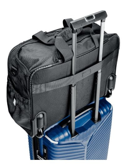 W wyposażeniu torby znajduje się również wysuwana teleskopowa rączka na podwójnym stelażu, która sprzyja wygodnemu prowadzeniu. Po złożeniu można ją schować w specjalnej kieszonce. Na tylnej ścianie został zaprojektowany specjalny uchwyt do zaczepienia na walizkę, który sprawia, że transport torby nie będzie stanowił dużego wysiłku, niezależnie od obciążenia.