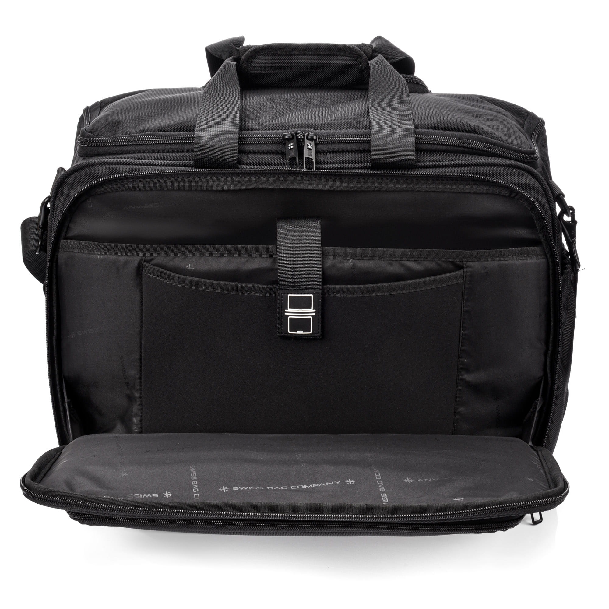 Torba podróżna na kółkach SwissBags A320 to nowoczesna torba biznesowa na kółkach, która posłuży w podróży pociągiem czy samochodem. Jej wymiary 45x36x20cm odpowiadają wymogom wiekszości linii lotniczych, dlatego można potraktować ją także jako bagaż podręczny umieszczany pod fotelem podczas podróży samolotem.