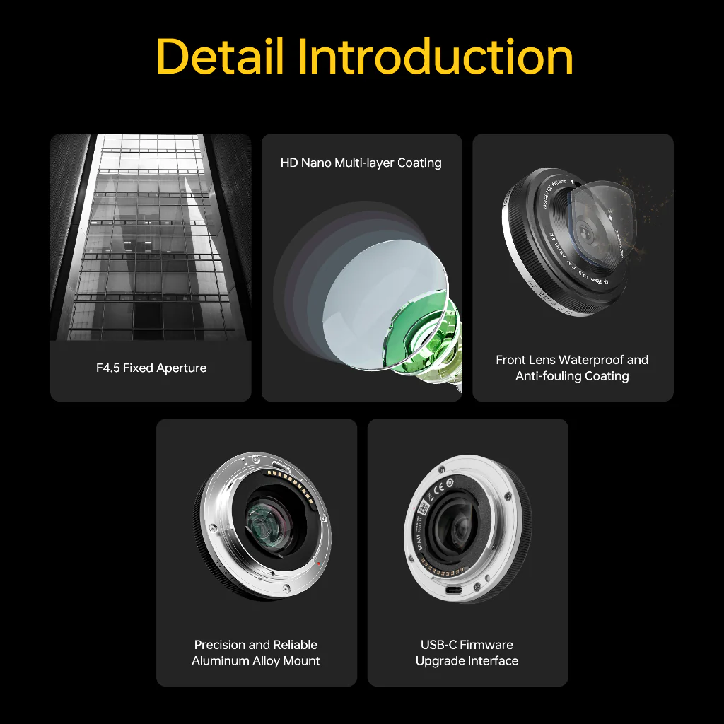Viltrox AF 28mm f/4.5 X to wyjątkowo cienki i lekki obiektyw stałoogniskowy, zaprojektowany z myślą o bezlusterkowych aparatach Fujifilm z matrycą APS-C. Jego ekwiwalent ogniskowej 42 mm sprawia, że jest idealnym wyborem do fotografii ulicznej, podróżniczej i codziennego rejestrowania rzeczywistości. Smukła konstrukcja typu "pancake" oraz szybki i precyzyjny autofokus czynią go doskonałym towarzyszem w każdej sytuacji.