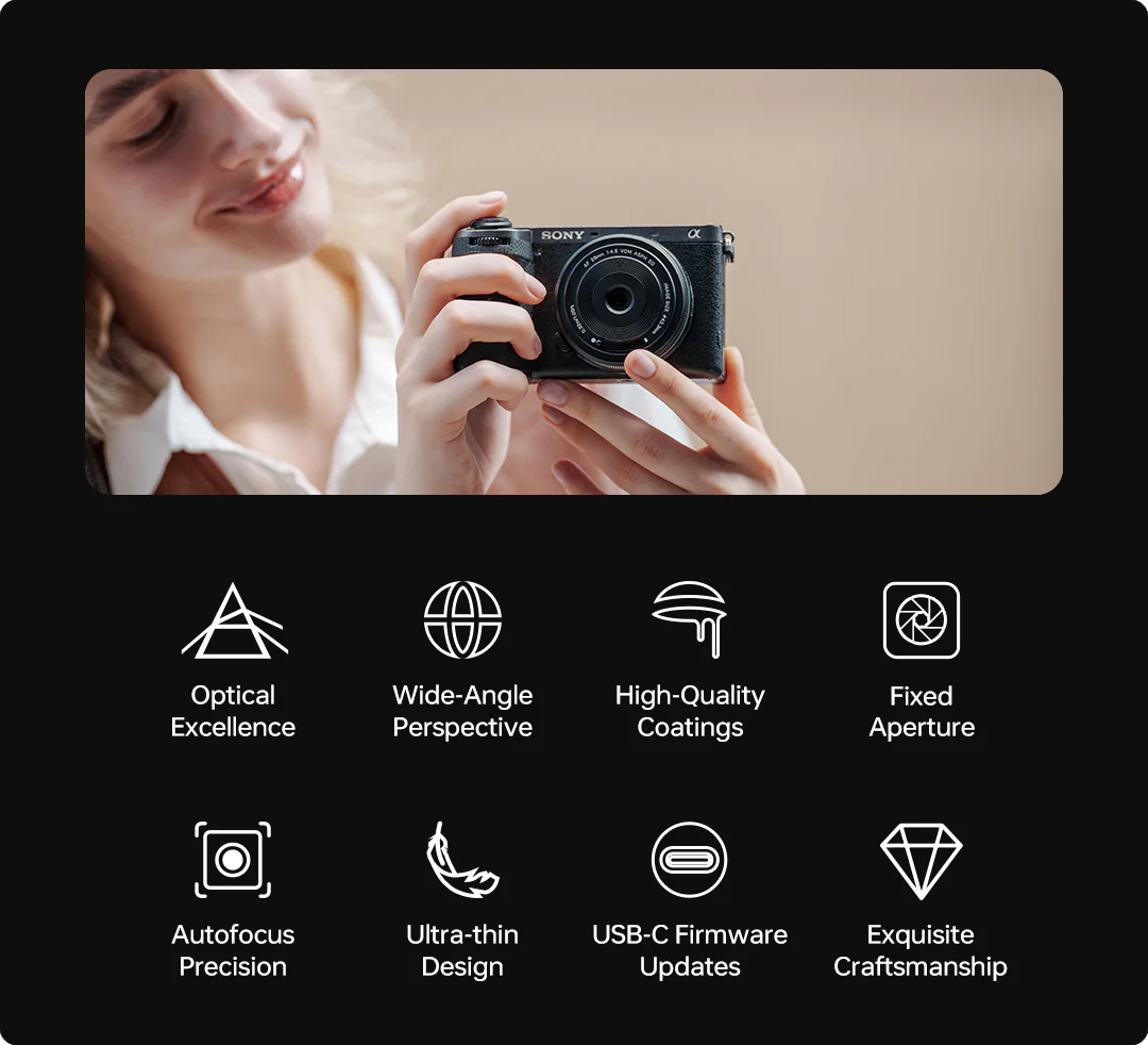 Ultralekki i smukły : Waży zaledwie 60 g i ma grubość 15,3 mm, dzięki czemu jest najlżejszym i najcieńszym obiektywem Viltrox, idealnym do łatwego fotografowania w podróży.
