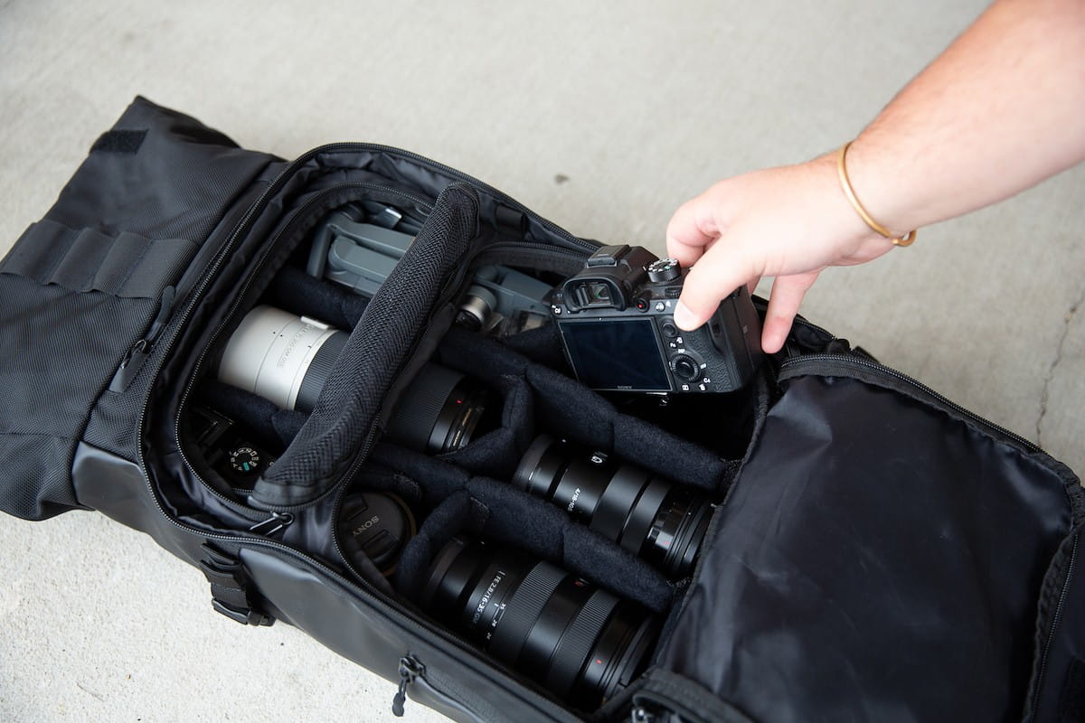 Wkład Wandrd Camera Cube Pro został zaprojektowany z myślą o fotografach, używających lustrzanek cyfrowych lub bezlusterkowców z dużą bazą wymiennych obiektywów. W jego wnętrzu zmieścimy dwa body, cztery średniej wielkości obiektywy, lampę błyskową oraz drona wielkości DJI Mavic Pro.