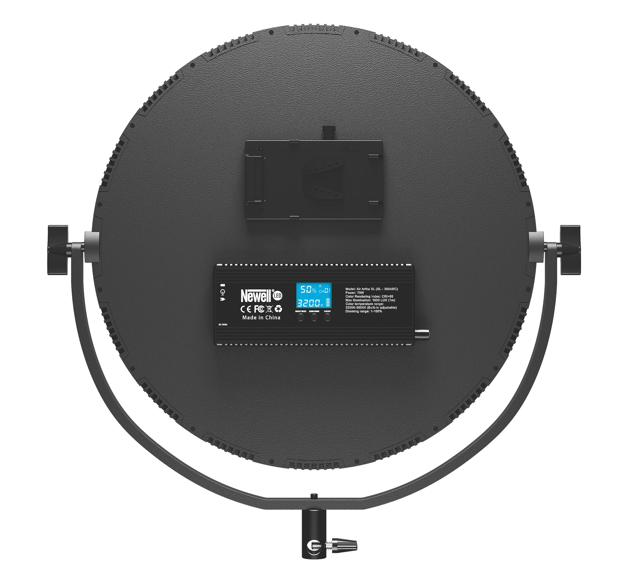 Lampa Newell Air Artha XL dostosowuje się do Twojego trybu pracy, oferując dwie niezależne opcje zasilania. W studio skorzystasz z dołączonego zasilacza sieciowego DC 15 V, który zapewni nieprzerwaną pracę przez wiele godzin. Gdy jesteś w terenie wystarczy sięgnąć po popularne akumulatory z serii V-Mount (dostępne w osobnej sprzedaży), by uniezależnić się od gniazdek i cieszyć pełną mobilnością. Wbudowany wyświetlacz poinformuje Cię o poziomie naładowania ogniw, dzięki czemu zawsze wiesz, kiedy należy je wymienić lub doładować.