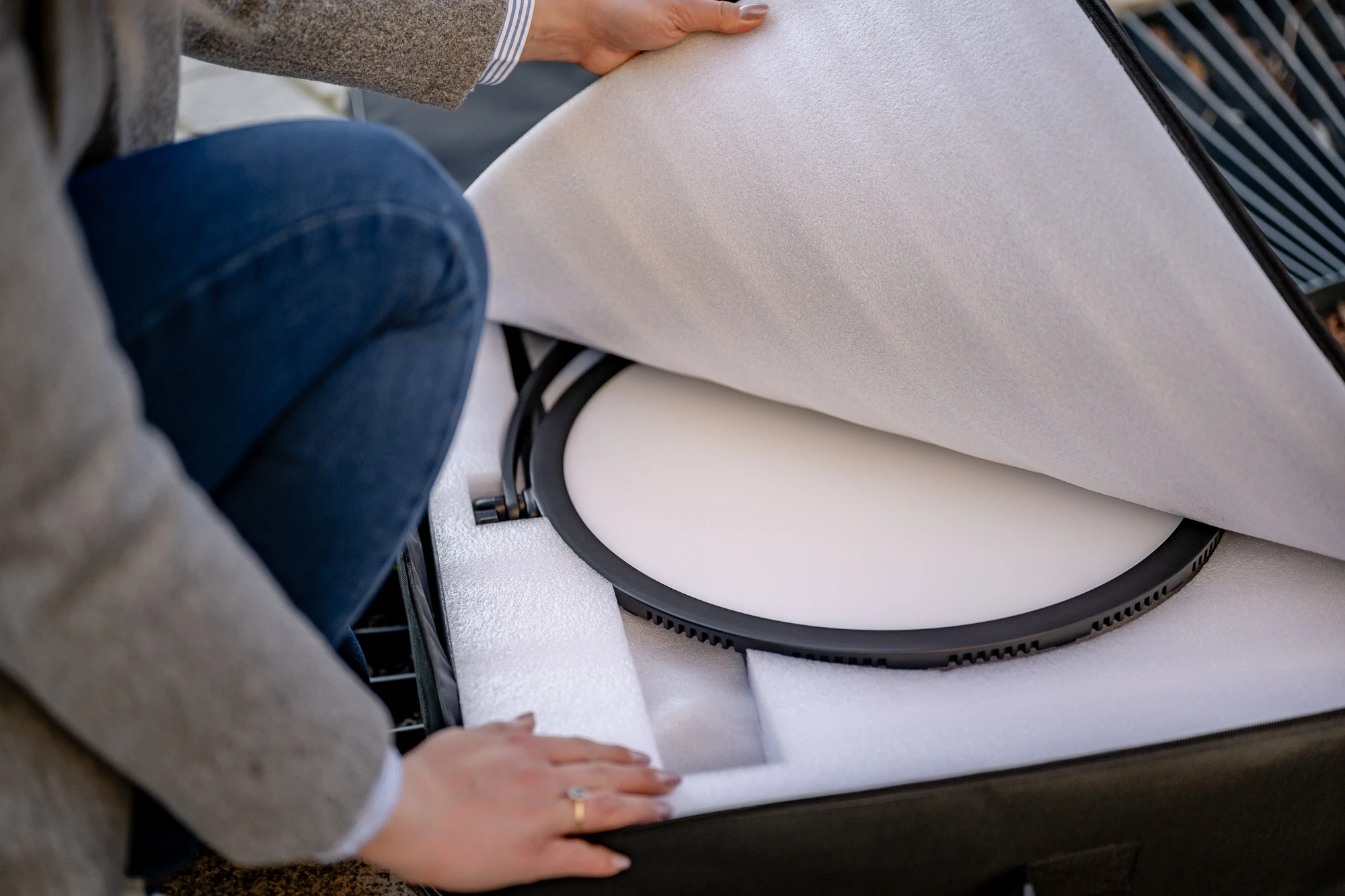 Newell Air Artha XL to duży okrągły panel LED o średnicy 41 cm, który skutecznie poprawi jakość Twoich zdjęć i produkcji video. Dzięki wbudowanemu dyfuzorowi uzyskasz przyjemne, miękkie oświetlenie bez konieczności sięgania po dodatkowe akcesoria. Możliwość regulacji temperatury barwowej (w zakresie od 3200 do 5600 K) i mocy światła sprawia, że bez trudu dopasujesz nastrój i charakter sceny do swoich potrzeb. Wszystkich niezbędnych zmian w ustawieniach w wygodny sposób dokonasz z poziomu podświetlanego ekranu, pilota lub aplikacji mobilnej.